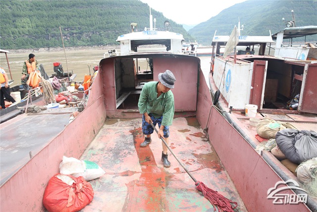 漁民吳興軍拿著拖把,仔仔細細地清理漁船?!斑@船跟了我12年了,有感情了,我得把它打掃得干干凈凈地再交?!?/p>