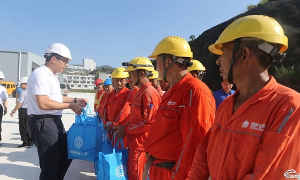 云陽網(wǎng)訊(記者 劉太興 朱學(xué)徽)連晴高溫天氣下,仍有眾多勞動者堅守一線,為保障云陽經(jīng)濟(jì)社會發(fā)展、維護(hù)城市正常運行揮灑汗水。8月10日,縣委副書記、縣長覃昌德率隊到我縣部分重點工程項目、重點企業(yè)、重點民生保障崗位現(xiàn)場,看望慰問奮戰(zhàn)在一線的干部職工,代表縣委縣政府向他們致以誠摯問候和衷心感謝。