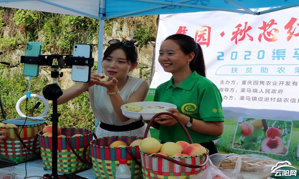 8月10日,記者來到渠馬鎮促進村桃園基地,一眼望去,果實累累,枝頭掛滿了白里透紅的桃子,整個桃園都彌漫著桃香。當天,果園的銷售負責人葉紅梅開啟線上直播,為自家的農產品代言。
