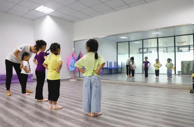 輔導老師手把手地糾正著小朋友的形體站姿