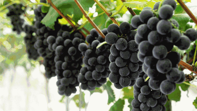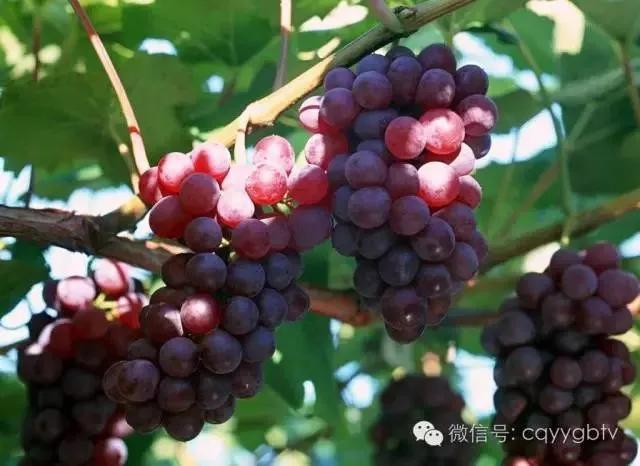 一串串紫色、紅色、黑色的葡萄掛滿枝頭