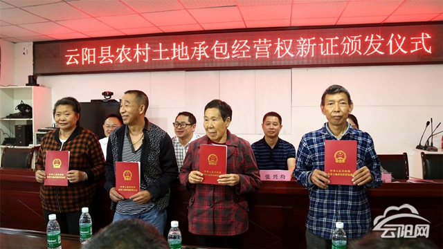 云陽網訊(記者 陳愛玲 徐銳)近日,云陽縣農村土地承包經營權新證頒發儀式在紅獅鎮詠梧社區舉行,經過簽字、按手印等簡單的流程后,29名村民從工作人員手中接過新證,喜上眉梢。這也標志著紅獅鎮詠梧社區村民的農村承包土地從此有了“合法身份”。