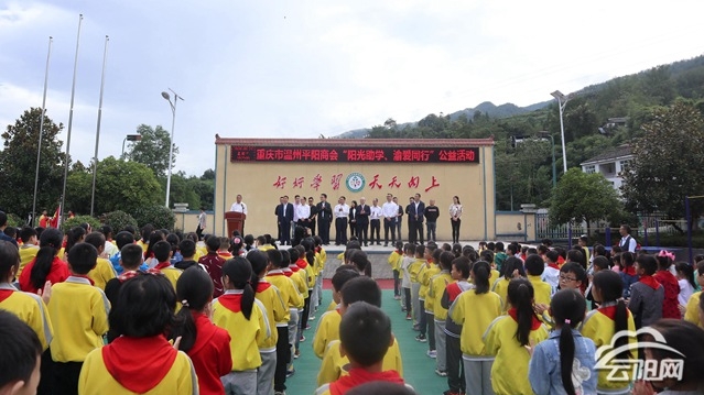 云陽網訊(通訊員 萬柯言)9月23日,桐林小學校園里洋溢著暖暖的愛意,重慶市溫州平陽商會正在這里舉行捐贈儀式。重慶市委臺辦,泥溪鎮政府,桐林小學全體師生員工參加了儀式。