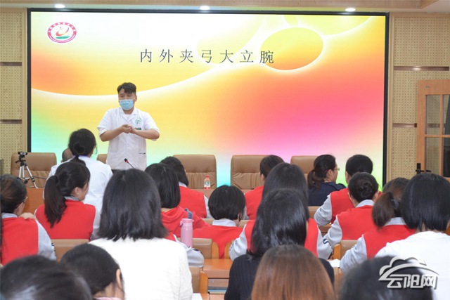 現場指導結束后,樊衛為全體教職工作了秋冬季疫情防控及諾如病毒知識培訓。他主要從疫情應急處置、疾病預防等方面詳細講解了幼兒園疫情防控工作的具體要求,并現場示范了七步洗手法。