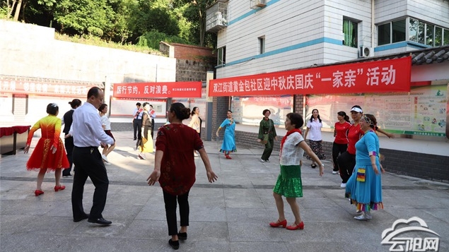 云陽網訊(記者 朱學徽 實習生 瞿利文)9月29日,雙江街道黃金包社區舉行迎中秋慶國慶“一家親”活動,共慶佳節。