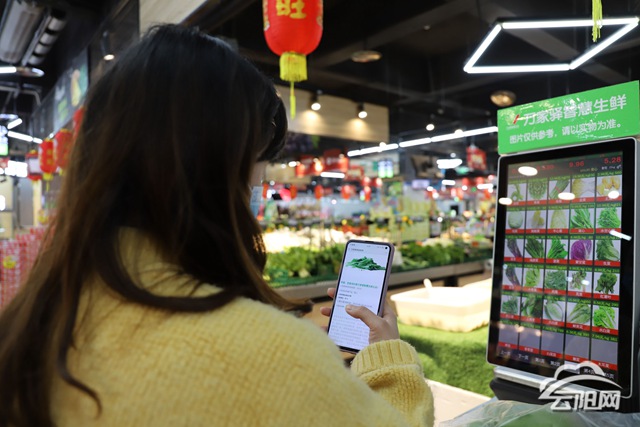 在萬家驛智慧生鮮超市的蔬菜水果銷售區,市民姚女士正在使用溯源智能秤,只見她點擊電子屏上的產品名稱后,屏幕上便顯示了該產品的重量、價格、來源地、質檢報告等信息。