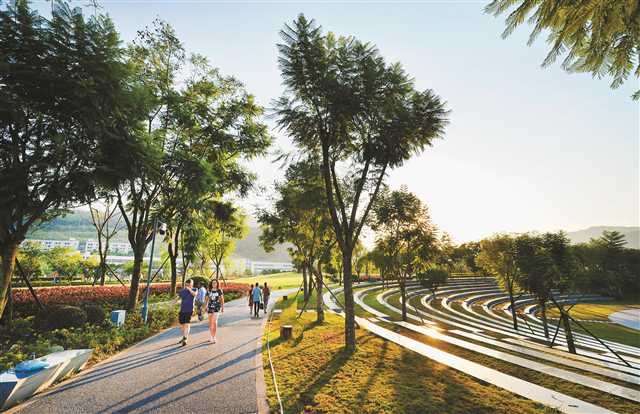 草坪漫步:自行車道、跑步道、漫步道串聯了整個公園,置身其中,欣賞著北斗之戀、紫薇星、南方的雪、愛在深秋等節點小品,以及香樟、紫薇、銀杏、玉蘭、葛槐、紅梅等近100種花卉植物,讓你猶如游走在水墨畫卷中。