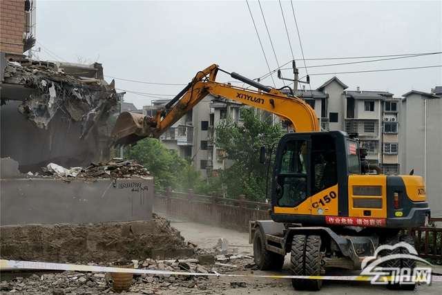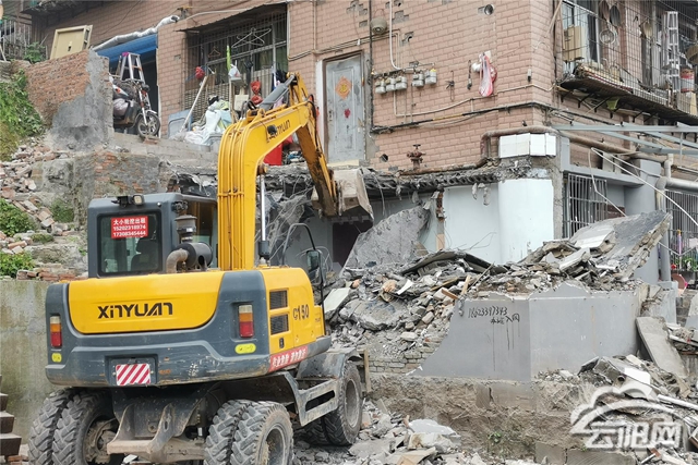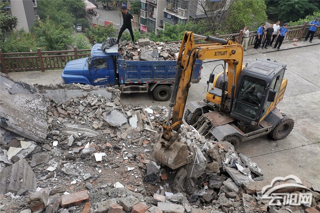 當天,縣城市管理綜合行政執法支隊聯合縣公安局、雙江街道辦事處等單位,對望江大道1425號魏太國聯建房北側的一處違建民用房和可燃雨棚進行了依法拆除。
