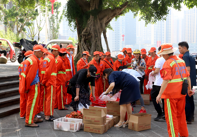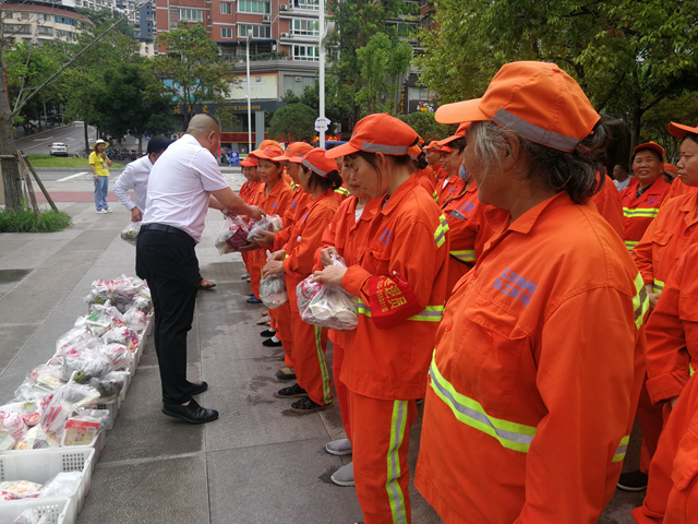 云陽網(wǎng)訊(實(shí)習(xí)生 黃美琪 實(shí)習(xí)生 吳孟軒)6月11日,縣城管局、徐工集團(tuán)聯(lián)合愛心企業(yè)綠康食品為城區(qū)的環(huán)衛(wèi)工人送上了粽子、節(jié)日慰問品等愛心物資,讓在烈日下辛勤工作的“城市美容師”吃上了新鮮的粽子,并送上了節(jié)日的祝福和問候。參加活動的有縣城管局副局長羅倫、徐工集團(tuán)領(lǐng)導(dǎo)丁鴻飛、城管局環(huán)衛(wèi)所負(fù)責(zé)人及所有環(huán)衛(wèi)工人等共計(jì)700余人。