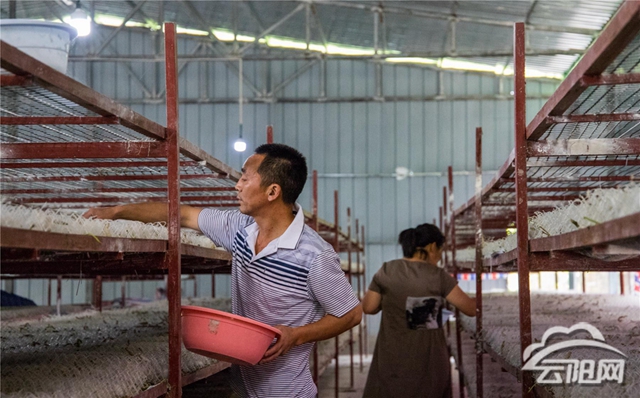 去年,鳳鳴鎮黎明村的養殖戶張平采用地下養蠶方式試養了兩批蠶,賺了兩三萬元。今年,張平加大生產,采用臺式養蠶方式,收益更是可觀。張平告訴記者,鎮里組織的技術專家會定期來養殖場培訓種桑養蠶知識。同時,農業龍頭企業峻西公司也會給他們提供消毒粉、漂白粉、防僵粉、滅蠶菌等養蠶物資。如今,夫妻倆幸福地忙碌在養殖車間里,看著蠶架上雪白的蠶繭,臉上樂開了花。