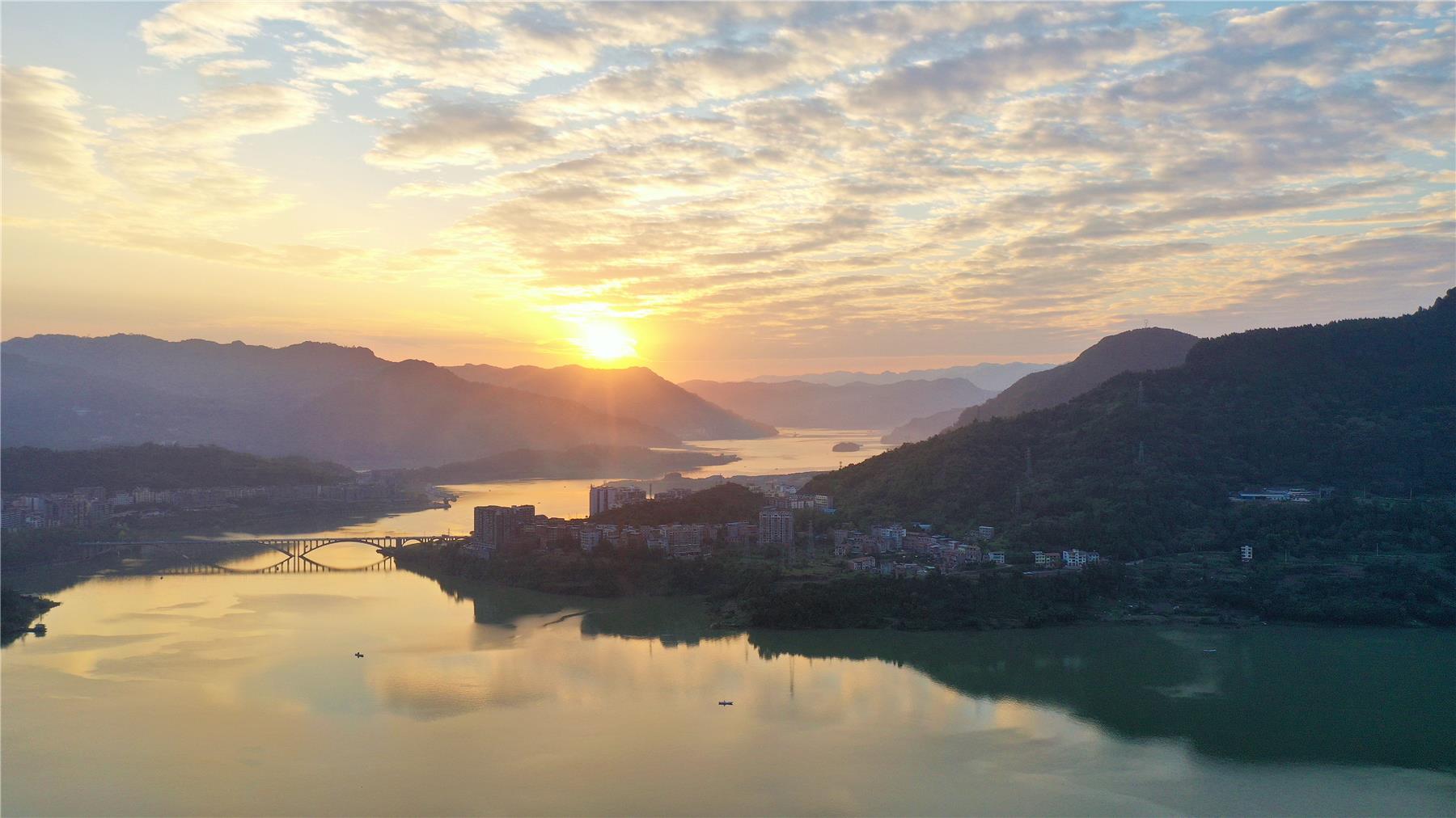 云陽網訊(記者 吳大維)時下,三峽水庫蓄至正常蓄水位175米,蓄水到位以后,云陽澎溪河也進入了最美時刻。湖面波光粼粼,岸邊白鷺公園青山蒼翠,陽光灑下,樓宇倒映湖中。湖光、山色、高樓相映襯,分外美麗。特別是在傍晚,平靜的湖面被夕陽染成金色,與遠處的雙江大橋、城市建筑共同構成了一幅如詩的畫卷。