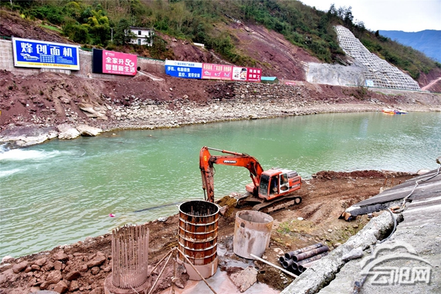 在施工現場,工人們正開動著挖掘機進行鉆洞、打樁等。據悉,此次集中整治范圍是江口集鎮休閑集散中心外側庫岸,共分為AB和BC兩段,其中AB段為抗滑樁,BC段為重力式擋土墻?!罢蝺热葜饕亲o坡、護堤,還設置了19根抗滑樁,其中最深的有20多米。工程完工后,能夠有效抵御洪水對江口集鎮的威脅,確保群眾生命財產安全。”江口鎮水利辦主任張勇介紹,目前施工方正搶抓進度,力爭在5月汛期來臨前完工。