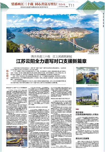 2021年,云陽(yáng)經(jīng)濟(jì)總量突破500億元大關(guān),連續(xù)4年躋身中國(guó)西部百?gòu)?qiáng)縣。如今,江蘇云陽(yáng)將攜手共同打造對(duì)口支援升級(jí)版,為奮力譜寫(xiě)全面建設(shè)“五地一支撐”社會(huì)主義現(xiàn)代化云陽(yáng)新篇章注入磅礴力量。