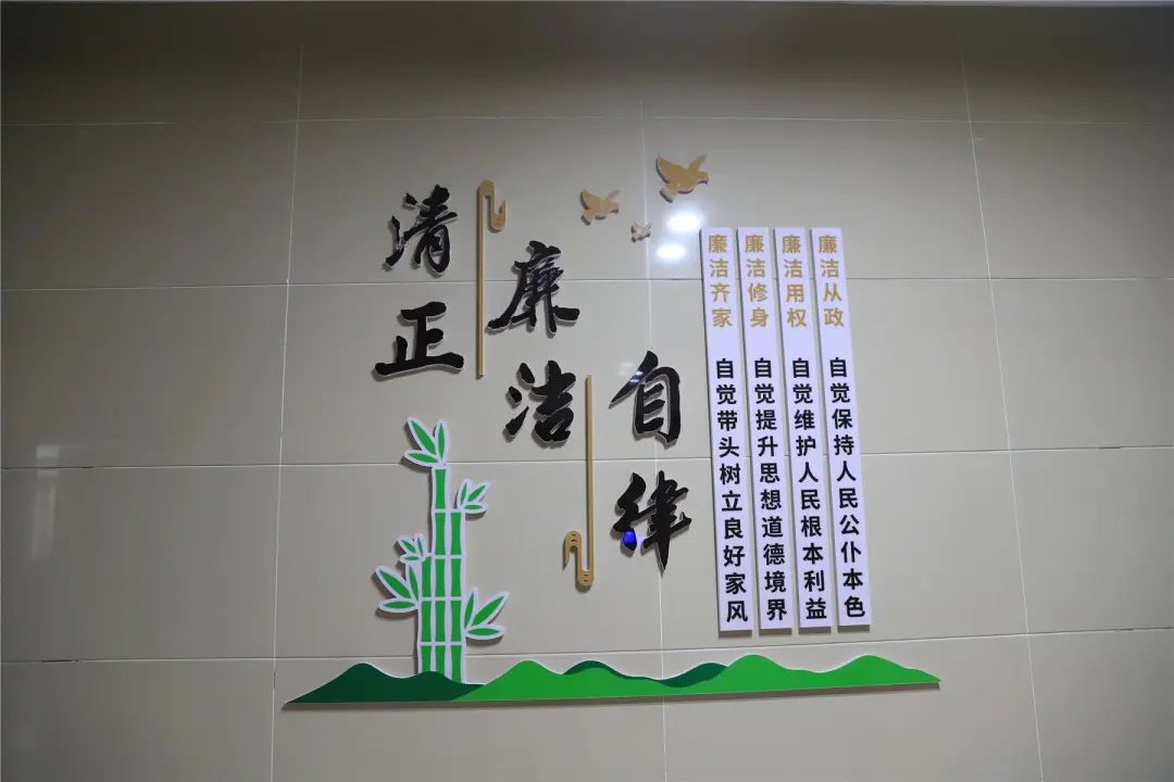 縣生態環境局的廉潔文化走廊以大廳為起點,在一至七樓根據科室職責和樓層功能,分別以“親、清、廉、慎、實、儉”六字為每層主題,每層在醒目位置點綴清廉文化和從政目標,通過張貼警示標語、名句典故等形式,時刻提醒干部職工,主動接受群眾監督,樹立廉潔修身的良好精神面貌。