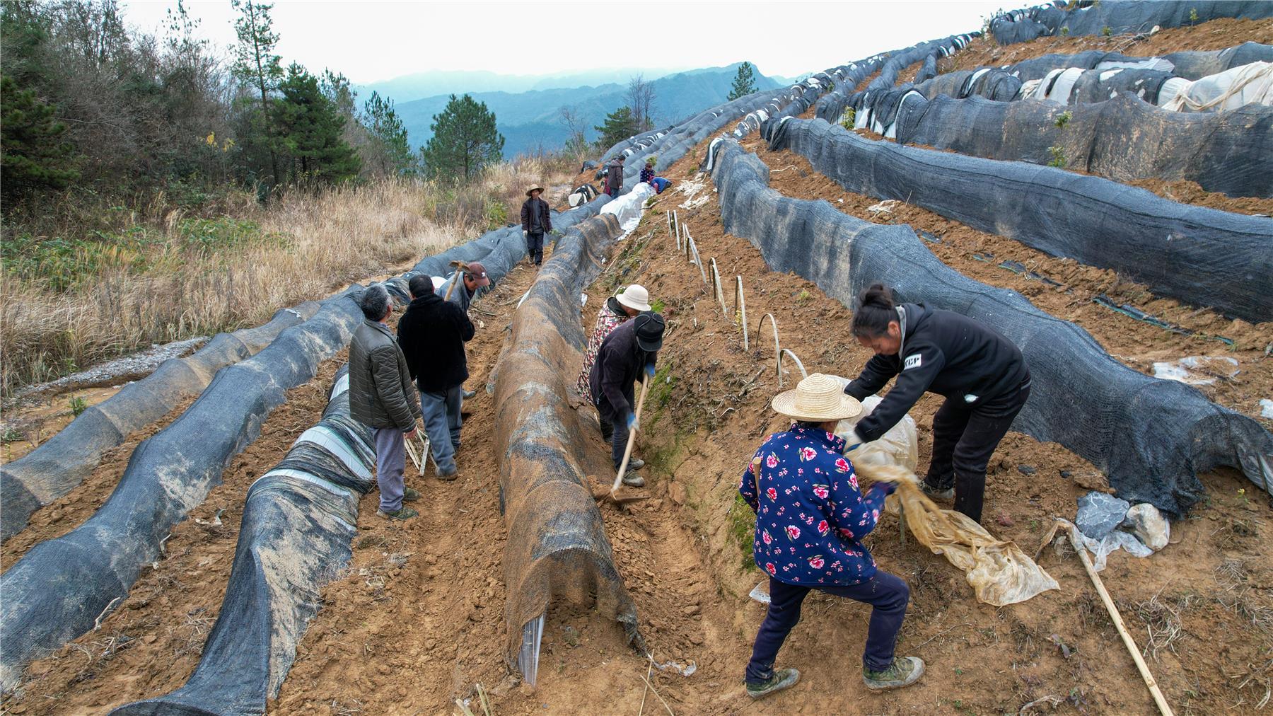“現(xiàn)在我在茶園務(wù)工,茶葉采摘的時候就幫忙采摘,一年有五六千塊收入,加上土地流轉(zhuǎn)金,比外出打工強(qiáng)多了。”村民金國安說。同樣,在沙市鎮(zhèn)復(fù)埡村茶葉種植基地里,今年3月份剛種下的茶苗已經(jīng)枝葉繁茂,生機(jī)勃勃。“新栽的茶苗要蓋地膜和天膜,蓋地膜主要是起到一個保溫保濕,蓋天膜就是起到防止極端天氣。”為了提高茶苗的成活率,近日,農(nóng)技人員走進(jìn)沙市鎮(zhèn)復(fù)埡村茶園,現(xiàn)場指導(dǎo)茶農(nóng)搭建拱棚,采取蓋地膜加天膜的措施,減少低溫天氣對茶樹的影響。這樣既有利于茶苗的呼吸作用,又有較好的防寒效果,確保茶苗成活率高、能產(chǎn)好茶。
