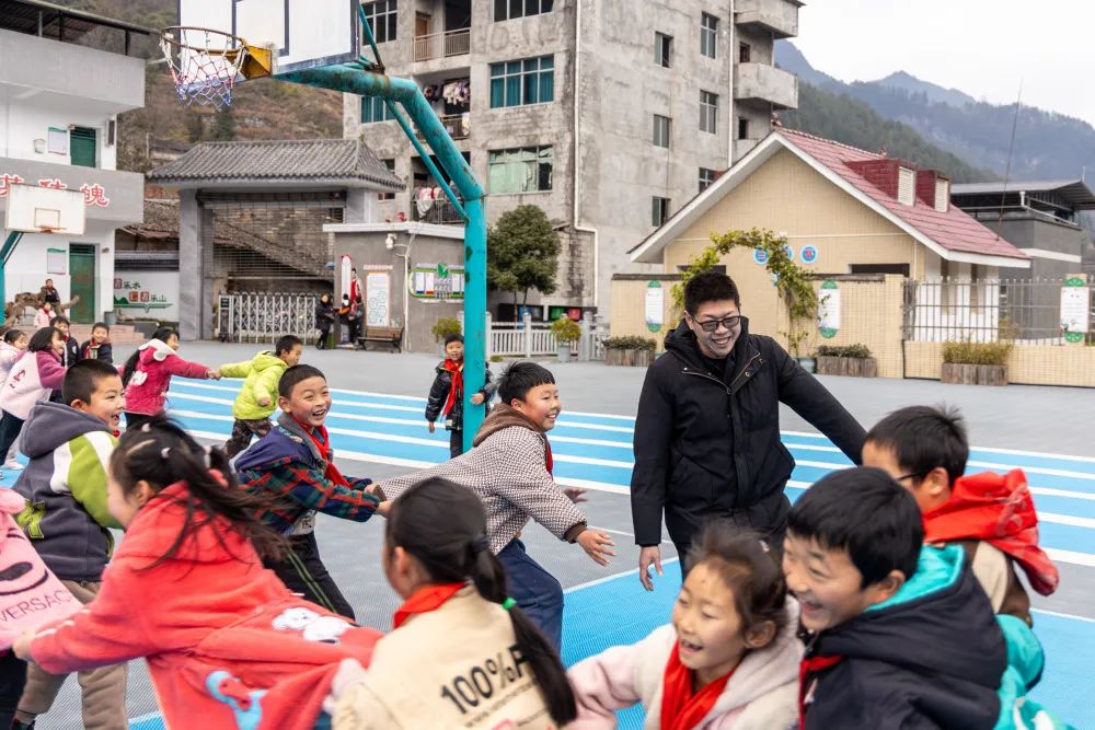 ▲2023年12月21日,云陽上壩鄉紅旗小學,孫洪磊帶領班上的小朋友在操場玩耍。記者 尹詩語 攝/視覺重慶