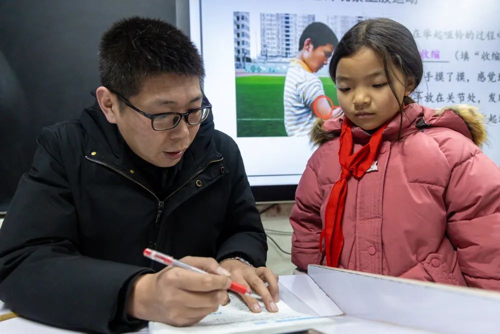 ▲2023年12月21日,云陽上壩鄉紅旗小學,孫洪磊正在指導學生。記者 尹詩語 攝/視覺重慶