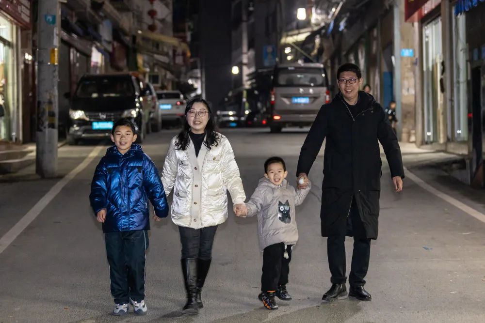 ▲2023年12月22日,云陽縣,孫洪磊和妻子向玲帶著兩個兒子走在耀靈鎮街上,臉上止不住露出幸福的笑容。記者 尹詩語 攝/視覺重慶
