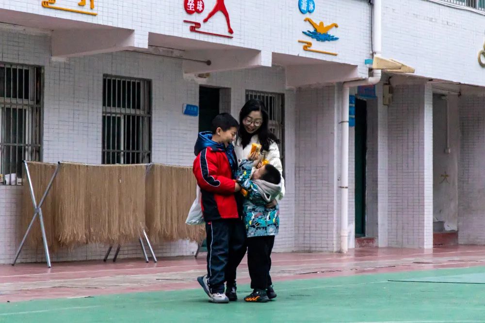 ▲2023年12月22日,云陽縣耀靈鎮耀靈小學,兒子們沖到媽媽懷中撒嬌。記者 尹詩語 攝/視覺重慶
