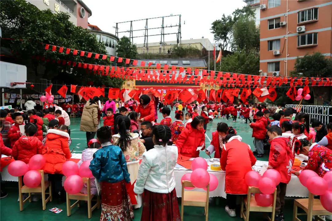 舞龍舞獅、剪紙、捏泥人、寫福字、撈元宵......具有濃濃民俗味道的游戲環(huán)節(jié)激發(fā)了小朋友們的好奇心。在舞龍舞獅環(huán)節(jié),你擊鼓,我舞龍,在音樂的伴隨下,小朋友們互相配合,讓小獅子和祥龍自由穿梭;在寫福字環(huán)節(jié),小朋友們帶著美好的祝福“揮毫潑墨”,寫出了各具特色的“福”字......