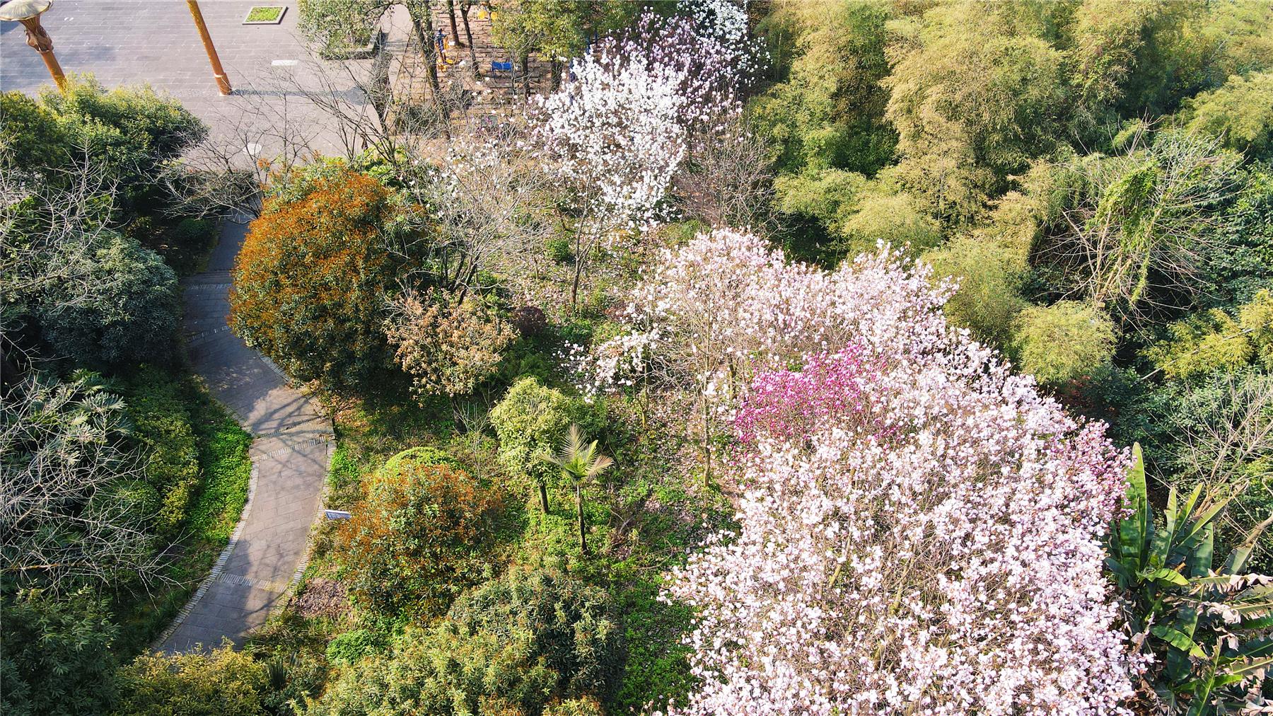 在云頂廣場,放眼望去,粉紅色、白色的玉蘭花交錯相間,或含苞欲放,或花枝招展,相互簇擁著,一陣微風吹過,玉蘭花迎風搖曳,宛若天女散花,給城市增添了無限春意。滿樹的玉蘭花潔白如玉,飽滿爭艷,引來了不少市民駐足欣賞、拍照留念。