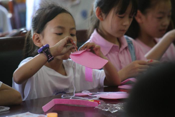 圖為小朋友認(rèn)真制作自己的專屬手工