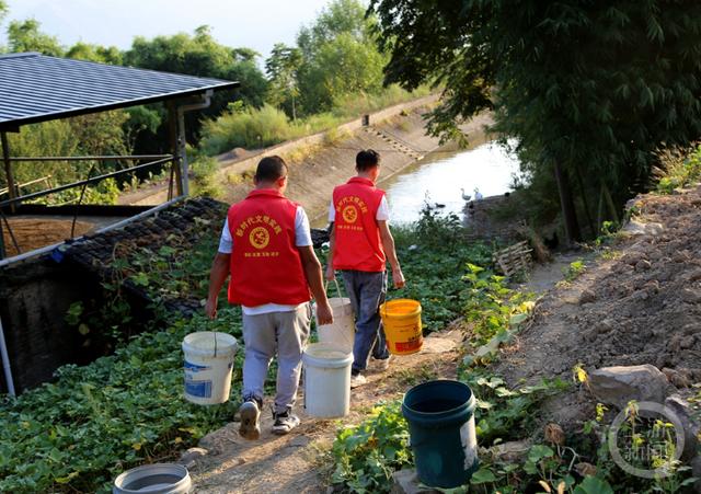 在云陽縣云安鎮三灣村,村民們紛紛拿著水桶、水盆等工具,在志愿者的幫助下有序地接水、提水。