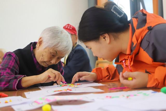 ▲在云陽縣雙江街道愛里養老服務中心,老人們在護理人員指導下,制作手工藝品。通訊員 譚啟云 攝