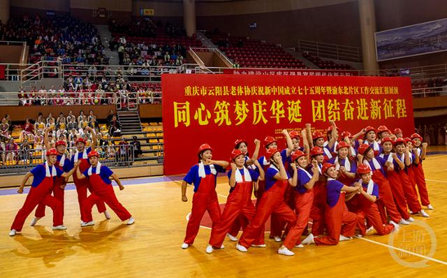 青松不老涌豪情,晚菊傲霜揚風(fēng)采。10月12日,云陽縣老體協(xié)慶祝新中國成立七十五周年暨渝東北片區(qū)老年體育工作交流匯報展演活動在云陽體育館舉行,云陽千余名中老年人展風(fēng)采。來自萬州區(qū)、開州區(qū)、梁平區(qū)、忠縣等渝東北片區(qū)的老體協(xié)相關(guān)負責(zé)人出席。