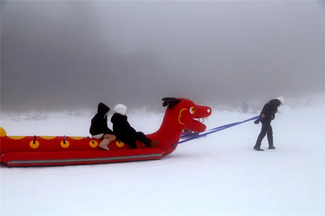 此外,滑雪場還主打戲雪項目,木質爬犁