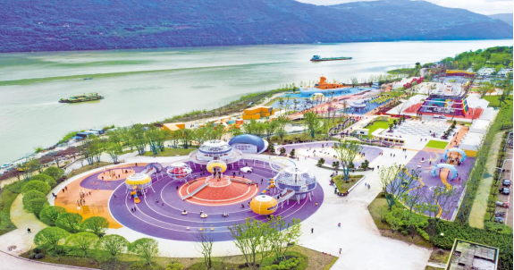 結(jié)合滑梯、秋千、彩虹跑道等兒童游樂設(shè)施,抓拍孩子歡笑瞬間,突出活潑氛圍。