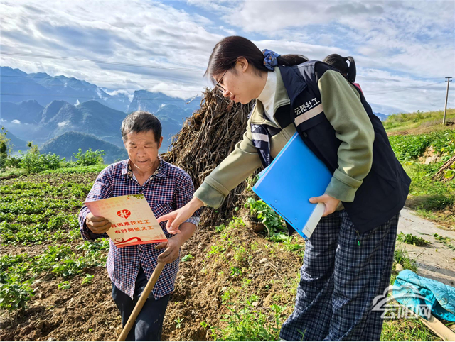 云陽網訊(通訊員 鄭四川)日前,縣委社會工作部“三區計劃”項目組社工在清水土家族鄉建興村,開展入戶送卡、貼心解憂專項行動。秉持村不漏組、組不漏戶的原則,社工們踩著田埂、走進深山院落,用鄉音拉家常、用真心送服務,將印滿實用聯系方式的便民愛心卡送到每一戶村民手中,讓便民服務直抵基層末梢,讓暖心關懷浸潤土家群眾心田。
