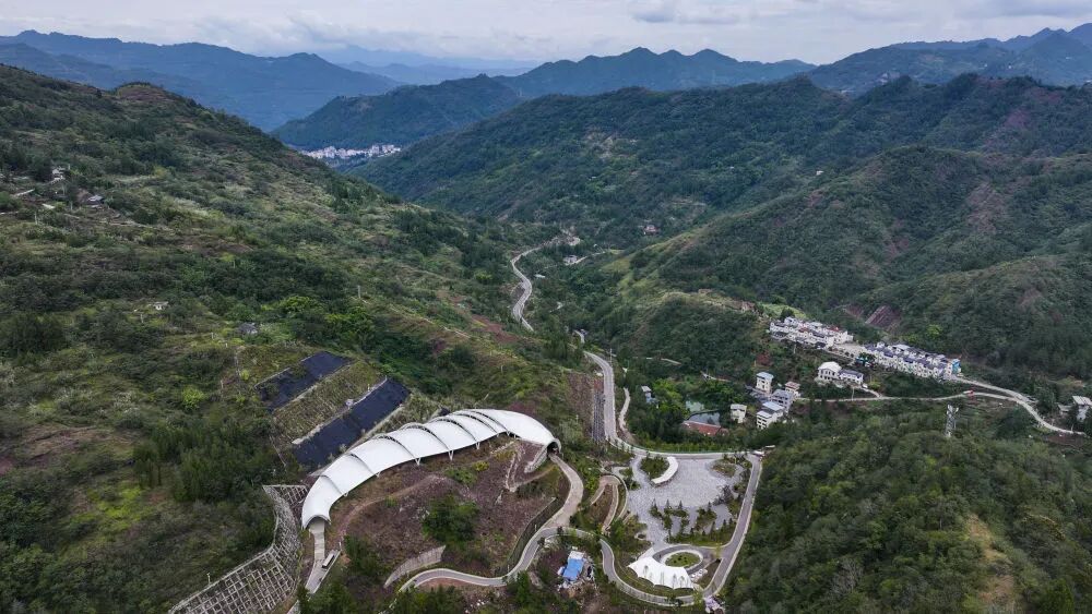 10月26日拍攝的重慶云陽世界地質公園恐龍化石遺址館入口(無人機照片)。新華社記者 劉潺 攝