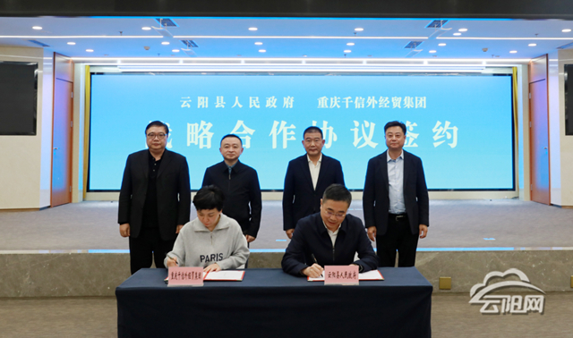 云陽網訊(記者 劉沖 樂陽)11月20日,重慶千信外經貿集團黨委書記、董事長劉漢杰一行來云考察,雙方就相關合作事宜進行座談交流,并簽署《戰略合作協議》。縣委書記陳道彬出席并講話。