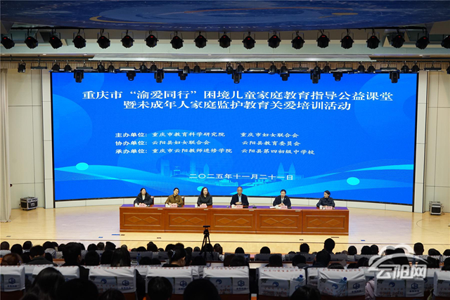 云陽網訊(記者 王月園 實習生 楊靖宇)11月21日,重慶市“渝愛同行”困境兒童家庭教育指導公益課堂暨未成年人家庭監護教育關愛培訓活動在云舉行。重慶市教育科學研究院德育研究所所長、重慶市家庭教育研究中心副主任譚舒予,縣人大常委會副主任張建才出席活動。
