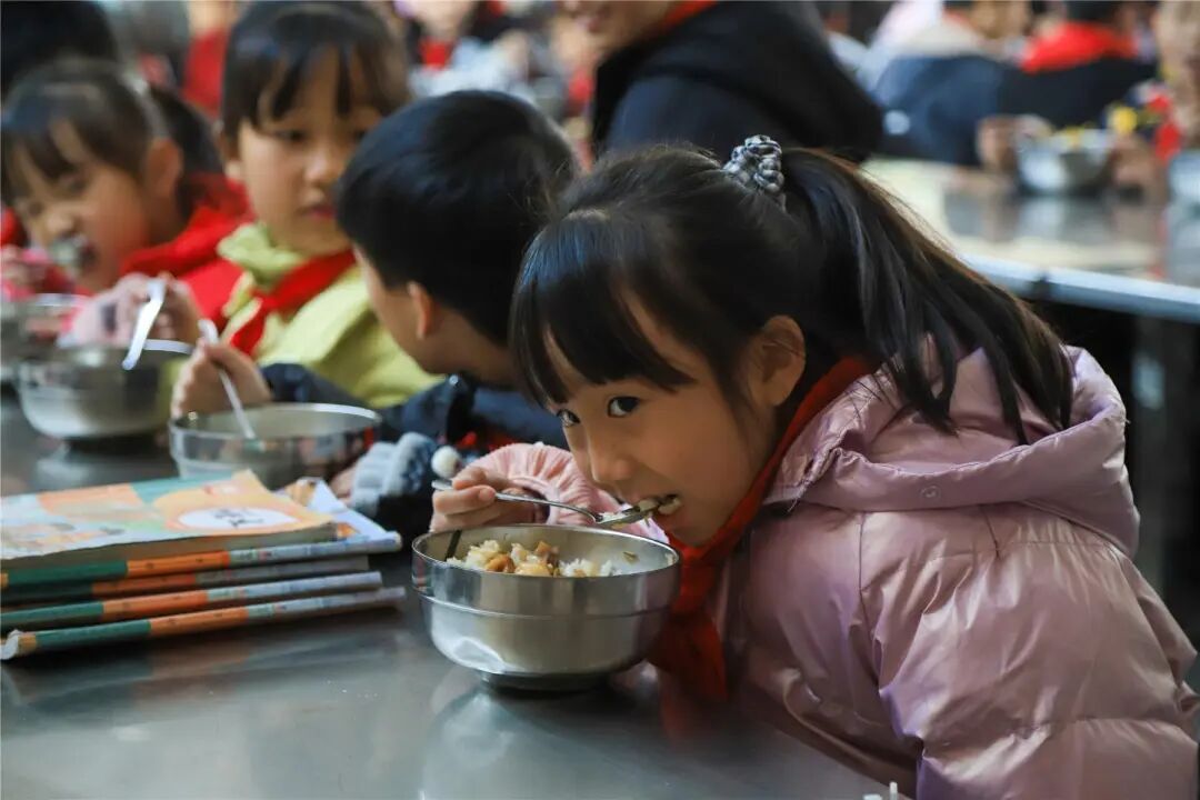 環境變美了,管理規范了,菜品也迎來了大升級。曾經的兩菜一湯變成了四菜一湯,葷素搭配合理。譚茗予最愛那道紅燒肉。鮮嫩多汁的肉塊裹著醇厚的醬汁,輕輕一咬,肉質入口即化,煩惱仿佛也隨之消散。還有那清炒時蔬,綠油油的色澤讓人食欲大增,咬上一口,仿佛能嘗到陽光和雨露的味道。“現在每頓飯都像在享受美食盛宴!”鳳鳴小學的張禹菡興奮地說。