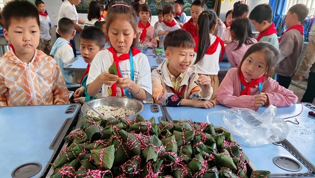 6月5日,盤石小學邀請家長志愿者們走進課堂,與學生們一起開展了“粽情端午 金色童年”包粽子勞動實踐活動,共迎端午佳節。