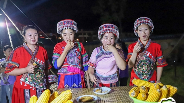 近日,在平安鎮忠誠村,一場別開生面的“村晚”拉開序幕,村民江學碧忙著看“村晚”趕頭席。