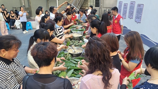 在端午佳節(jié)到來之際,5月28日,青龍街道亮水坪社區(qū)聯(lián)合新明物業(yè)公司,邀請(qǐng)社區(qū)居民在九里江岸小區(qū)舉行包粽子比賽。