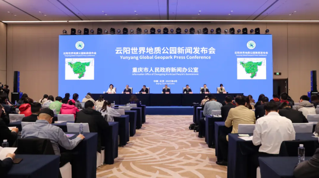 4月18日下午云陽世界地質公園新聞發布會在京舉行來自全國100余家文旅企業、地質專家及媒體代表共同見證重慶首個世界地質公園的誕生