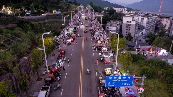 7月15日傍晚,云陽縣青龍街道復興社區2組的高碧蘭,在梨樹坡大橋(被稱為“網紅橋”)旁支起烤爐,一邊熟練地翻烤著玉米,一邊熱情吆喝。