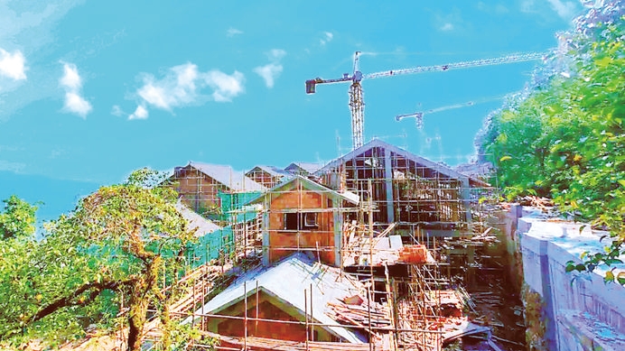 日前,記者來(lái)到云陽(yáng)縣龍脊嶺公園云頂之上看到,磐石城保護(hù)利用項(xiàng)目一標(biāo)段(云街配套建筑)的6棟配套用房主體建筑基本完工,正在進(jìn)行內(nèi)外墻裝飾,整個(gè)項(xiàng)目有序推進(jìn)實(shí)施。