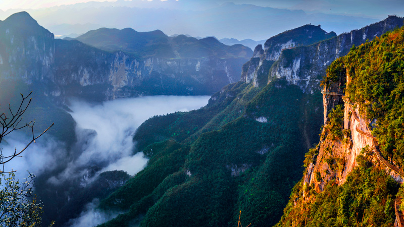 龍缸是一個長軸350米、短軸170米.深550米的橢圓形天坑,這一深度位居中國第三位,世界第五位。缸內壁如削,壁縫松柏橫臥,古藤倒垂,缸底四季吐翠,百鳥爭鳴,因形狀為一個天然大石缸,還流傳樵夫與龍女愛情的美妙傳說,而得名龍缸,又被譽為“天下第一缸”。
